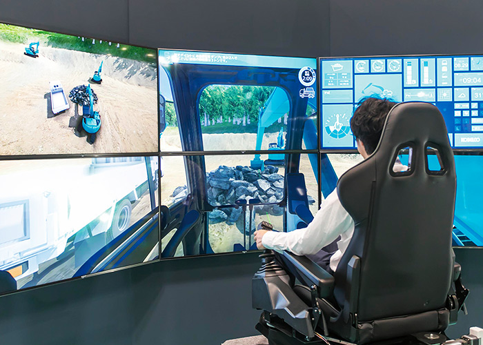 機(jī)械的遠(yuǎn)程操作系統(tǒng)“K-DIVE”,應(yīng)對(duì)新一代的移動(dòng)通信技術(shù)——5G,并致力于不久的將來應(yīng)用于實(shí)際生活。操作者無需到遠(yuǎn)方的工地現(xiàn)場(chǎng)或工作條件比較艱苦的現(xiàn)場(chǎng),在舒適的辦公室內(nèi),即可操作位于工地現(xiàn)場(chǎng)的建設(shè)機(jī)械。例如,在北京的辦公室,就能操作位于成都和上海的工地現(xiàn)場(chǎng)的機(jī)械進(jìn)行施工。