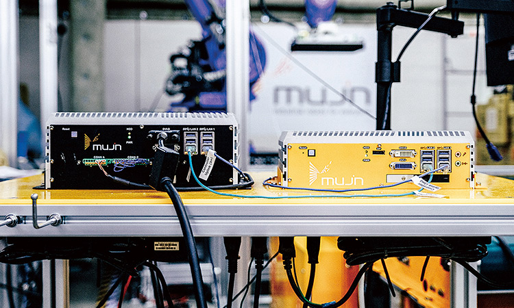 左側(cè)是MUJIN控制器、右側(cè)是MUJIN獨(dú)立開(kāi)發(fā)的高速圖像處理視覺(jué)控制器